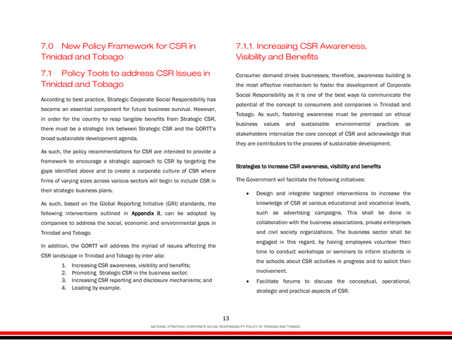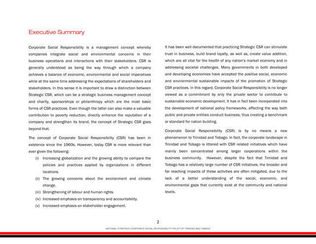 National Strategic Corporate Social Responsibility Policy for Trinidad and Tobago - March 2, 2016